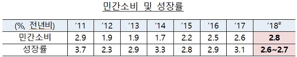 ② ‘18년 민간소비는 ’11년 이후 7년 만에 최대 수준 증가 및 ‘05년 이후 처음으로 GDP 성장률보다 높은 증가세 시현 예상