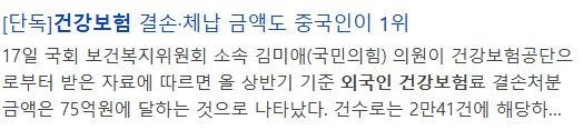 239억 원 적자, 2023년 640억 원 적자)를 기록하는 것으로 보도되면서, 중국인들이 건강보험 재