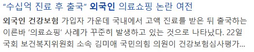 - 참고로 공단은 외국인들의 건강보험 부정 수급을 막고자 외국인·재외국민이 6개월 이상