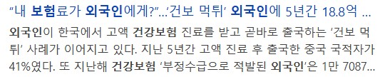 · 중국인(동포)들이 한국에서 건강보험료는 적게 내면서 고액의 의료혜택을 받는다?