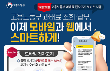 12월 22일 고용노동부 과태료 전자고지 서비스 시행