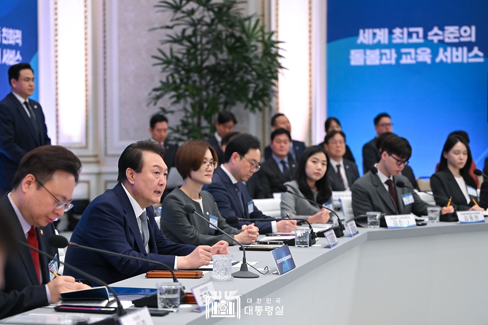 - 윤석열 대통령이 28일 청와대 영빈관에서 열린 제1차 저출산고령사회위원회 회의에서 발언하고 있다.