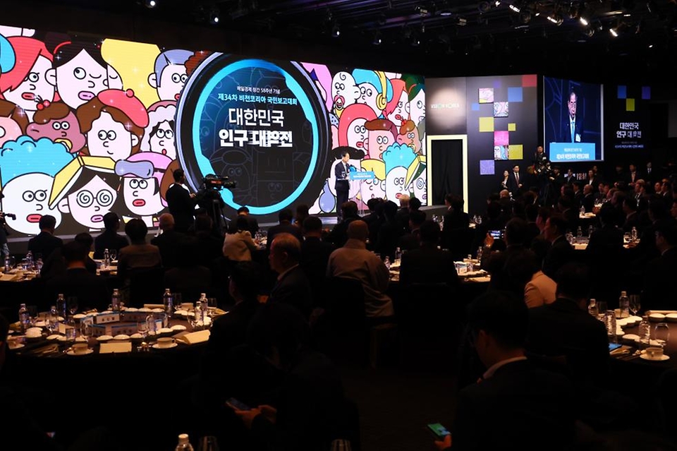 - 한덕수 국무총리가 20일 서울 중구 신라호텔에서 대한민국인구대역전을 주제로 열린 매일경제 창간 58주년 기념 ‘제34차 비전코리아 국민보고대회’에 참석해 축사를 하고 있다.