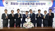 - 임기근 조달청장(왼쪽)이 29일 최원목 신용보증기금 이사장(오른쪽)과 혁신적 조달기업의 성장지원을 위한 업무협약을 체결하고 있다.