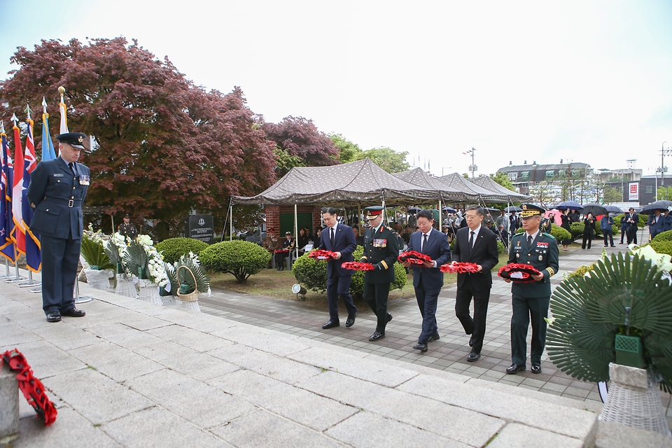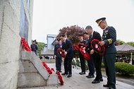 - 이희완 국가보훈부 차관이 24일 오전 경기도 가평군 영연방참전기념비에서 열린 영연방 가평전투 73주년 기념식에 참석하여 헌화를 하고 있다.