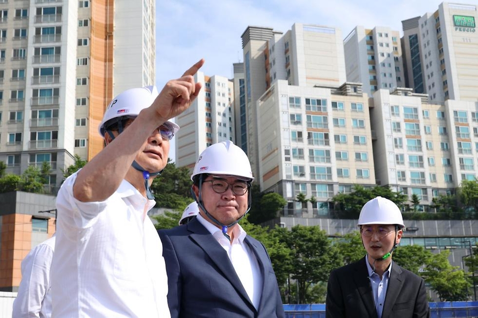 - 한덕수 국무총리가 22일 서울 동작구 흑석동 흑석 재정비 촉진지구를 방문해 국민의힘 나경원 당선인과 함께 관계자의 안내를 받으며 9구역 현장을 점검하고 있다.