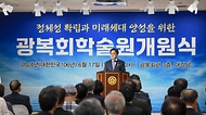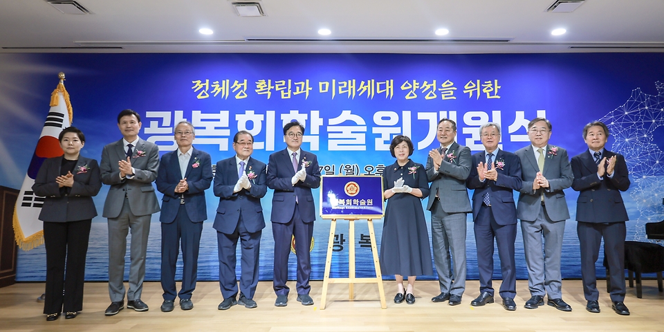 - 강정애 국가보훈부 장관이 17일 오후 서울시 영등포구 광복회관에서 열린 광복회 학술원 개원식에 참석해 주요내빈과 함께 광복회 학술원 현판 제막식을 하고 기념촬영을 하고 있다.