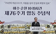 - 한덕수 국무총리가 19일 전남 보성군 한국차문화공원에서 열린 여수·순천 10·19사건 제76주기 합동 추념식에 참석, 추념사를 하고 있다.