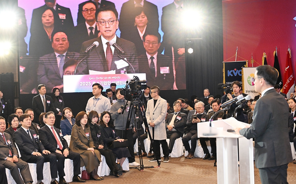 - 최상목 대통령 권한대행 부총리 겸 기획재정부 장관이 1월 3일 서울 영등포구 중소기업중앙회에서 열린 ‘2025년 중소기업인 신년인사회’에 참석, 신년사를 하고 있다.