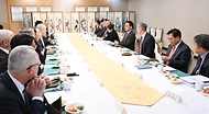 - 최상목 대통령 권한대행 부총리 겸 기획재정부 장관이 1월 9일 오후 서울 종로구 정부서울청사에서 열린 '주한 유럽상공회의소(EUCCK) 오찬 간담회'에서 참석자들과 악수하며 인사를 나누고 있다.