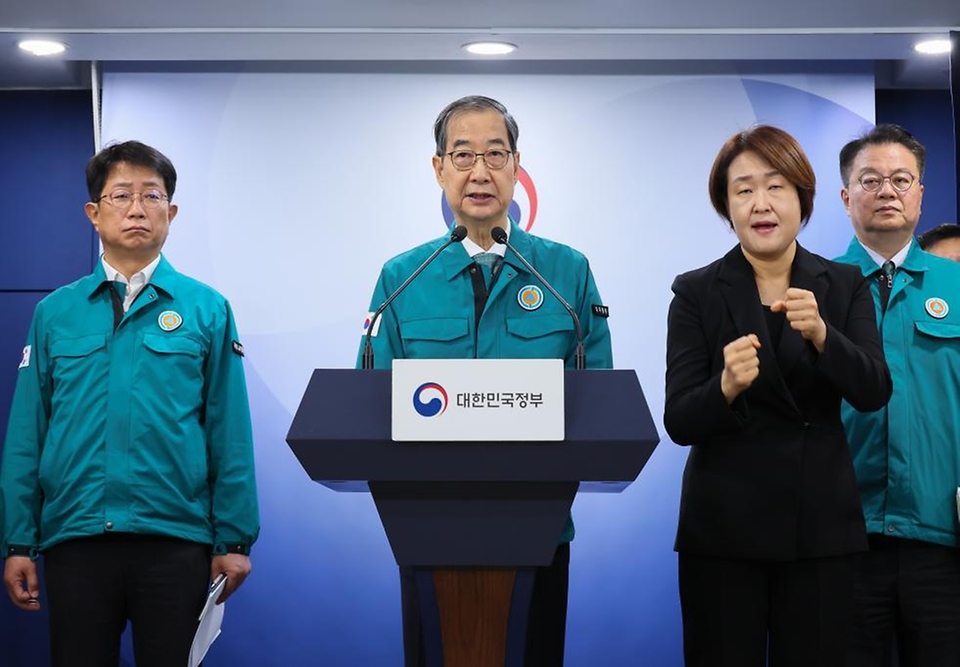 - 한덕수 대통령 권한대행 국무총리가 26일 세종대로 정부서울청사에서 산불 예방 관련 대국민담화를 하고 있다.