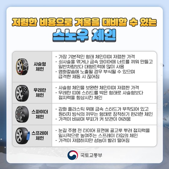 ◆ 저렴한 비용으로 겨울을 대비할 수 있는 스노우 체인