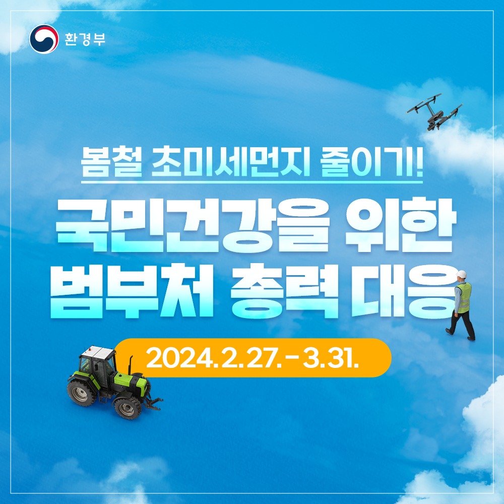 국민의 건강을 보호하기 위해 환경부와 관계부처가 힘을 합쳐 미세먼지에 총력 대응합니다.