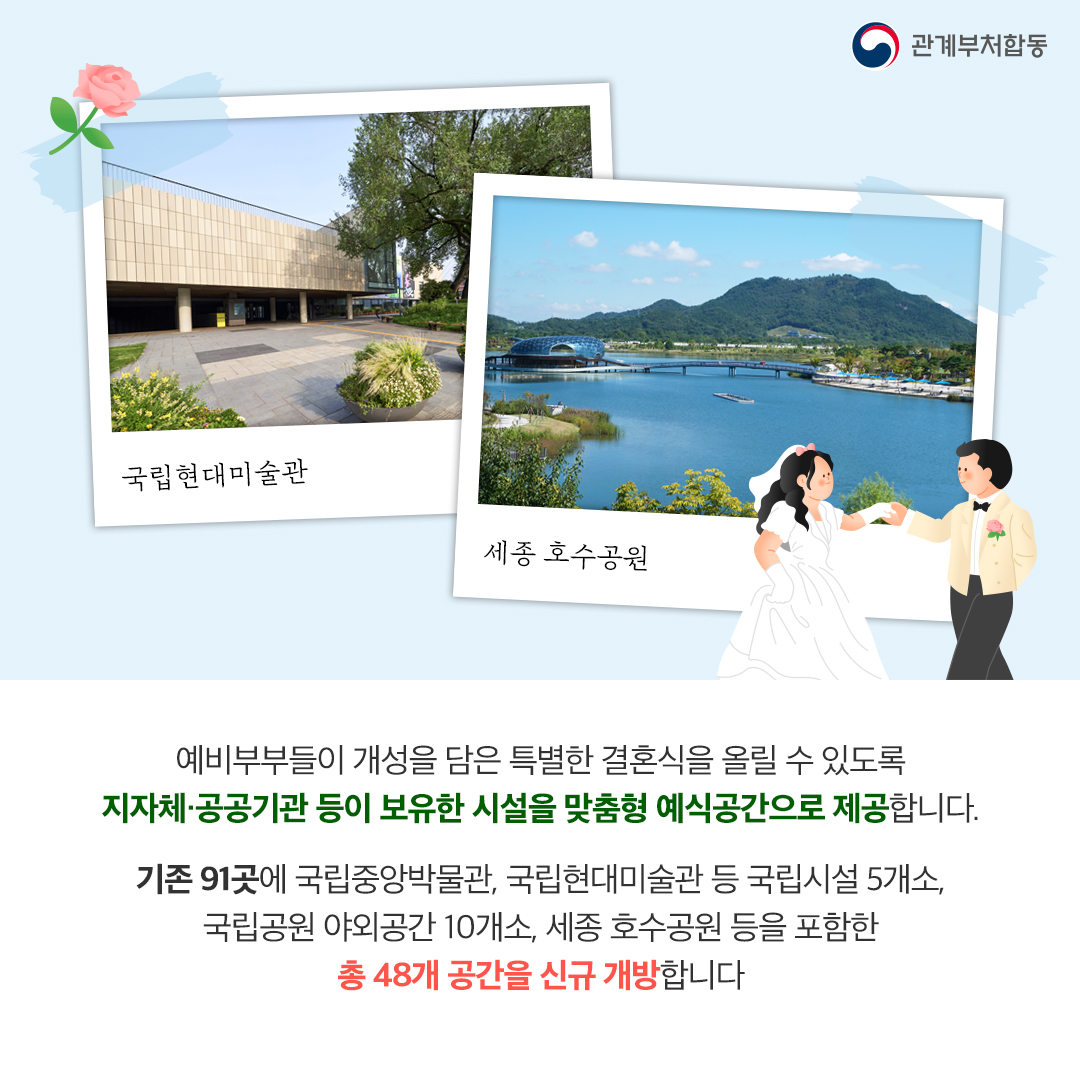 앞으로 청년이 원하는 공간을 지속적으로 발굴해 27년 말까지 200개소 이상의 공공시설을 예식공간으로 개방할 계획이니 많은 관심 부탁드립니다!
