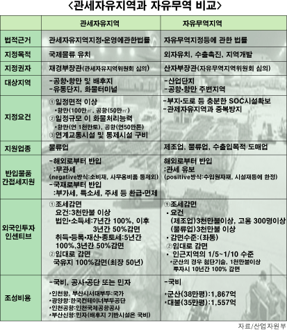◆자유무역지역과 관세자유지역의 통합 운영=내년 하반기부터 제조업종도 관세자유지역에 입주할 수 있으며, 자유무역지역에 입주한 기존업체도 반입 신고한 내국물품에 대해 부가가치세 영세율을 적용한다.
