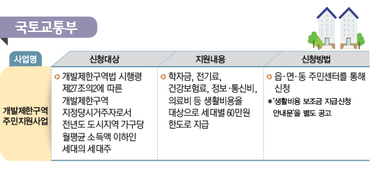 다음기사[저소득층 중앙부처 지원사업 안내] 국세청정책브리핑 게시물 운영원칙에 따라 다음과 같은 게시물은 삭제 또는 계정이 차단 될 수 있습니다.