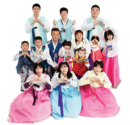 지난여름의 열기가 채 가시지 않은 9월 초의 어느 날, 스튜디오까지 오느라 비지땀을 흘렸을 열네 명의 가족들 얼굴에는 미소가 떠날 줄 몰랐다. 열두 명 아이들의 어머니 노정화 씨는 “온 가족이 모두 모여 찍는 첫 가족사진”이라며 아이처럼 기뻐했다. 남편 김중식 씨도 “오랜만에 나들이 나온 것 같아 기분이 좋다”며 허허 웃어보였다. 서울 면목동의 소문난 다둥이 가족을 만났다.