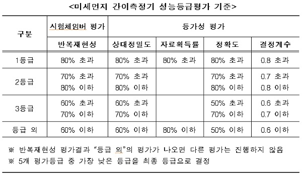 미세먼지 간이측정기에 대한 성능인증등급서가 처음 부여된다. 이에 따라 성능에 대한 검증 없이 유통 중이던 간이측정기에 대한 성능 향상 및 신뢰도를 높일 것으로 보인다.