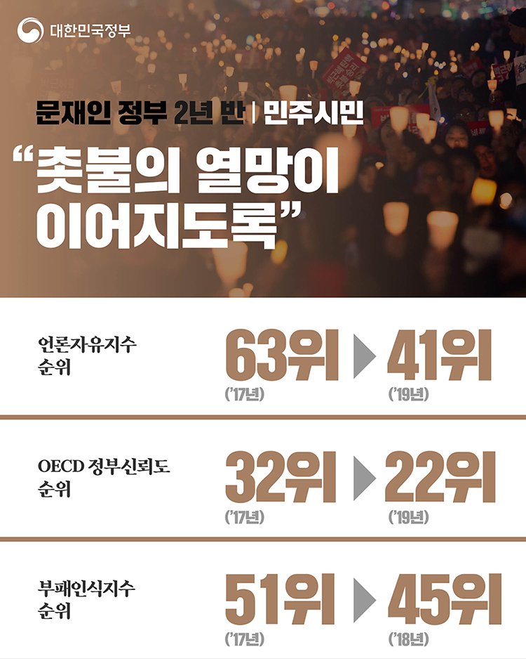 - 언론자유지수 순위 (’17년) 63위 → (’19년) 41위