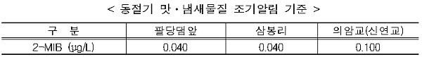 특히 겨울철에 맛·냄새물질의 기준이 초과할 경우 정수처리 강화 등 적절한 대응을 위해 관련 분석결과를 한강유역환경청 등 유관 기관에 신속하게 제공하고 있다.