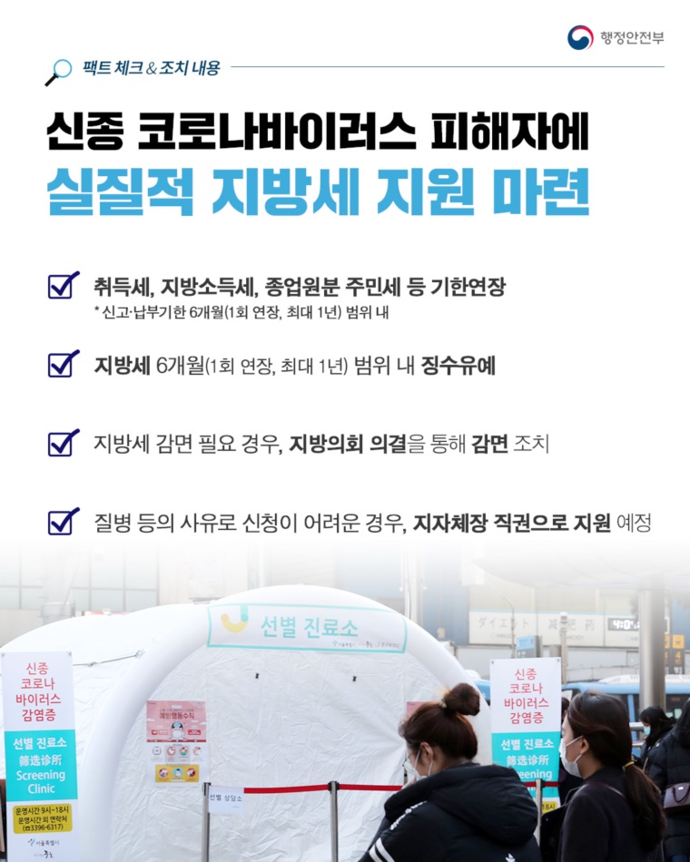 신종 코로나바이러스 피해자에 실질적 지방세 지원 마련