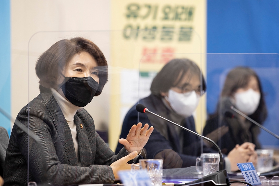 - 한정애 환경부장관이 23일 오후 공주대 예산캠퍼스에서 10개 야생동물 구조센터 대표들과 함께 ‘유기 외래 야생동물 임시보호를 위한 협약’을 체결하고, 정규 보호시설이 마련되기 이전까지 라쿤, 미어캣, 여우, 프레리독 등 4종의 유기 야생동물을 안전하게 보호해줄 것을 당부하고 있다.