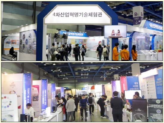 ‘2016년 대한민국 R&D 대전’ 내부의 모습과, 4차 산업혁명 기술체험관. |