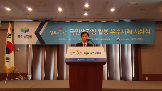 지난 12월 23일 ‘정부3.0 국민생각함 활용 우수사례 시상식’이 서울 프레스센터에서 개최됐다.