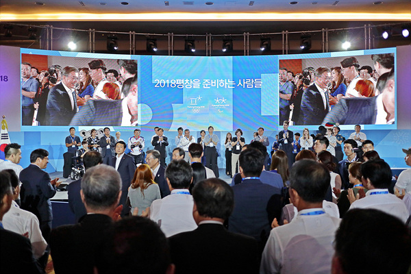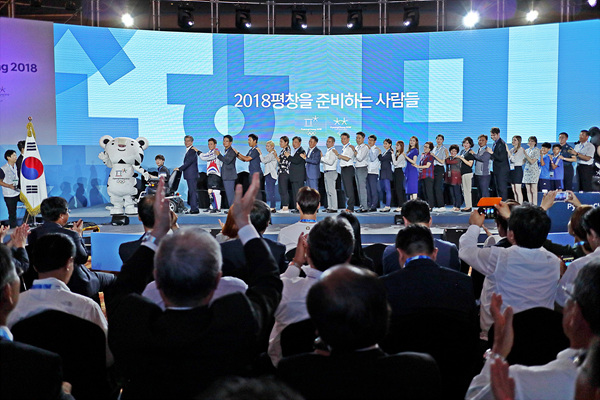 2018 평창동계올림픽 개막식을 정확히 200일 앞둔 지난 24일, 강원도 평창 알펜시아 리조트 컨벤션센터에서 문재인 대통령을 비롯한 이희범 평창동계올림픽대회 조직위원장, 최문순 강원도지사 등 관계자와 자원봉사자 등 300여명이 참석한 가운데 ‘2018 평창을 준비하는 사람들’ 행사가 열렸다.