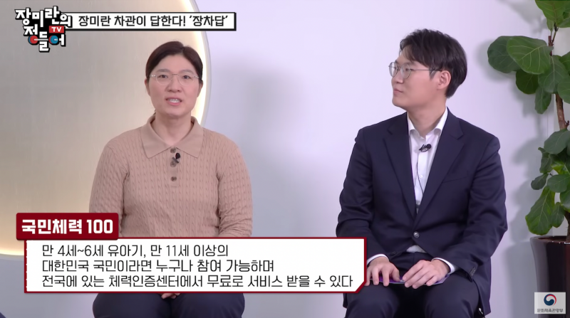 문화체육관광부 유튜브 채널에서는 장미란 차관이 직접 출연하여 체육, 관광 정책을 소개하고 소통하는 청년세대 맞춤형 ‘정들어 TV’가 운영 중이다. 유용한 정책을 소개해 주기 때문에 종종 즐겨보곤 한다. 2022 항저우 아시안게임이 얼마 남지 않은 9월 초, 국가대표 양성 정책 사업과 관련된 영상에서 흥미로운 정책이 눈에 띄었다. 개인의 체력 상태를 국가에서 무료로 측정해 주는 사업인 ‘국민체력100’에 대한 설명이었다.